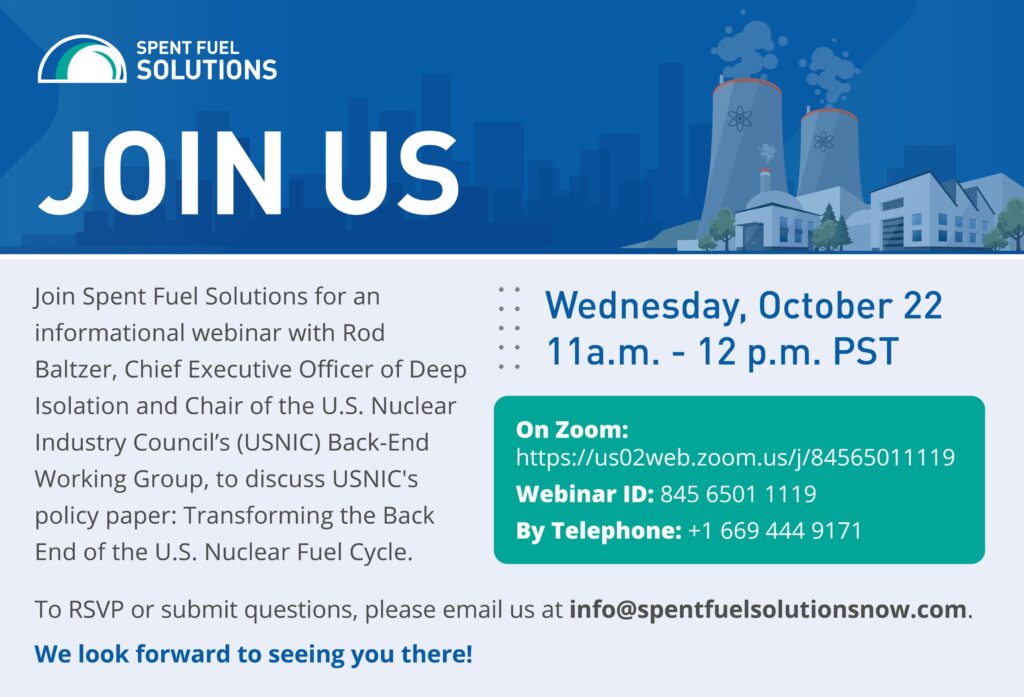 To RSVP or submit questions, please email info@spentfuelsolutionsnow.com.